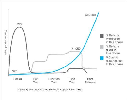 Plus tard une vulnérabilité est découverte et corrigée, plus sa correction est est couteuse (en risque, en temps, en argent…)