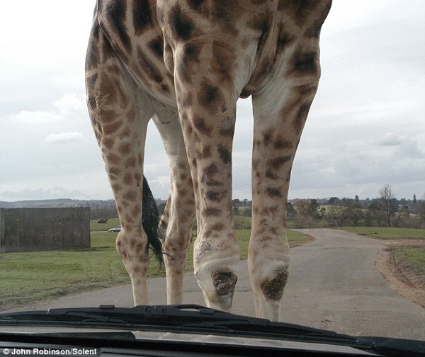 À l’approche du village, une girafe persuadée de l’importance des frontières est plantée au milieu de la route et contrôle ceux qui veulent passer.